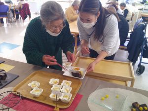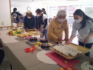 抹茶芋餡シベリア、鳴門金時の蒸しパン、ガトーショコラ、栗羊羹、牛乳餅、季節の果物(リンゴと柿)でした。